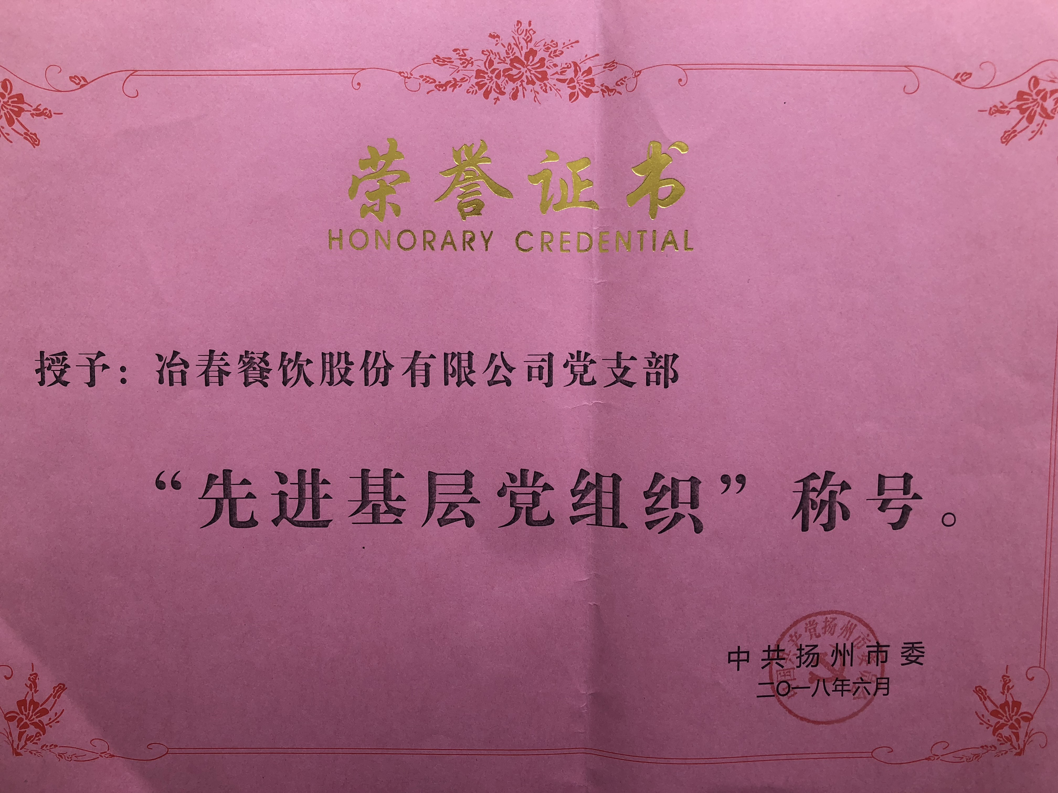 “七·一”前夕,市委召開(kāi)大會(huì),表彰了一批全市先進(jìn)基層黨組織和優(yōu)秀共產(chǎn)黨員。冶春餐飲股份有限公司黨支部被授予“先進(jìn)基層黨組織”榮譽(yù)稱號(hào)。