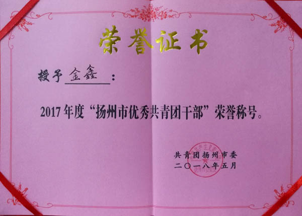 揚(yáng)州商城團(tuán)支部書記榮獲市級優(yōu)秀團(tuán)干稱號