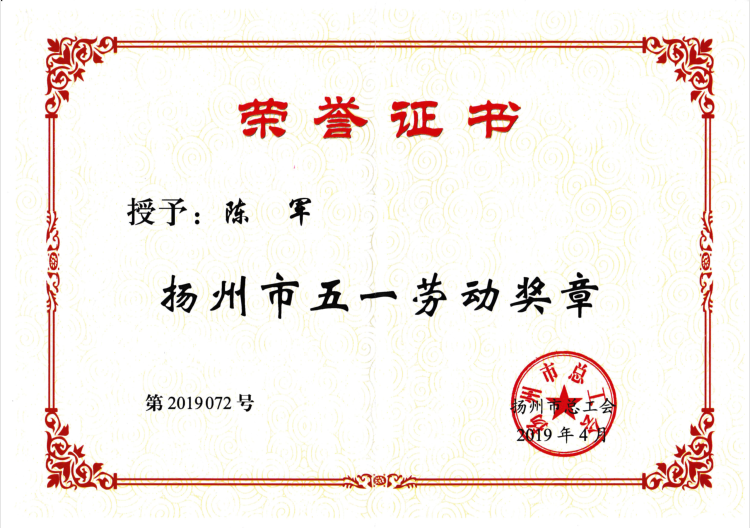 冶春餐飲陳軍同志榮獲“揚(yáng)州市五一勞動(dòng)獎(jiǎng)?wù)隆?/span>