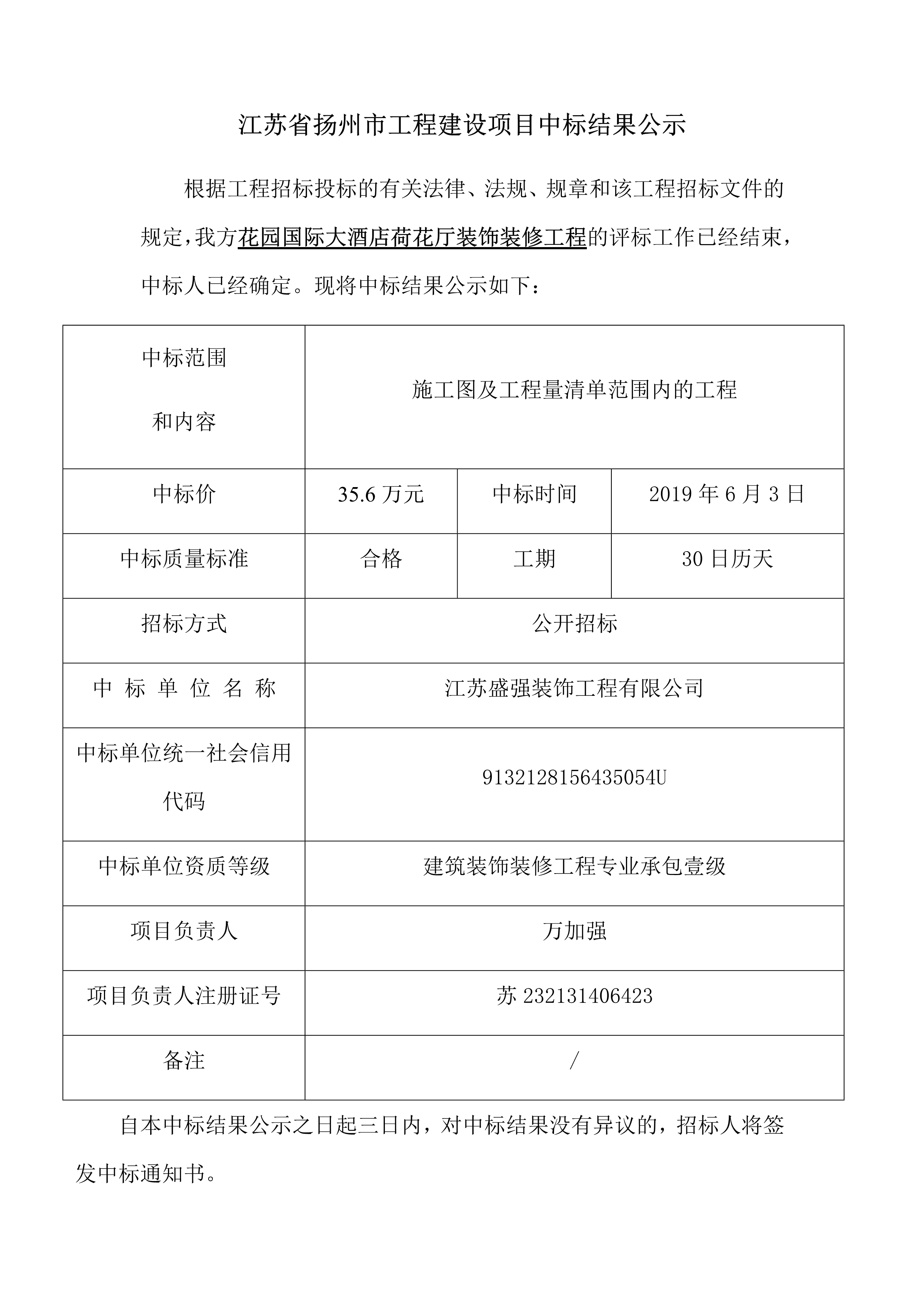 江蘇省揚州市工程建設(shè)項目中標結(jié)果公示
