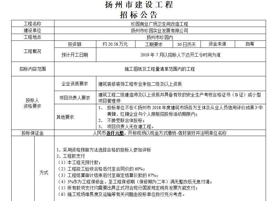 揚州市建設工程招標公告