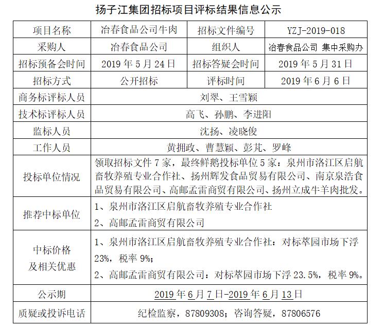 備注:投標(biāo)人對(duì)招標(biāo)結(jié)果有疑問(wèn)的,應(yīng)采用書(shū)面形式,寫(xiě)清質(zhì)疑內(nèi)容、具體事實(shí)和理由并附相關(guān)證據(jù)材料,由法定代表人簽字并加蓋單位公章后在公示期內(nèi)送達(dá)指定部門(mén)。 揚(yáng)子江集團(tuán)集中采購(gòu)辦 2019年6月6日 |