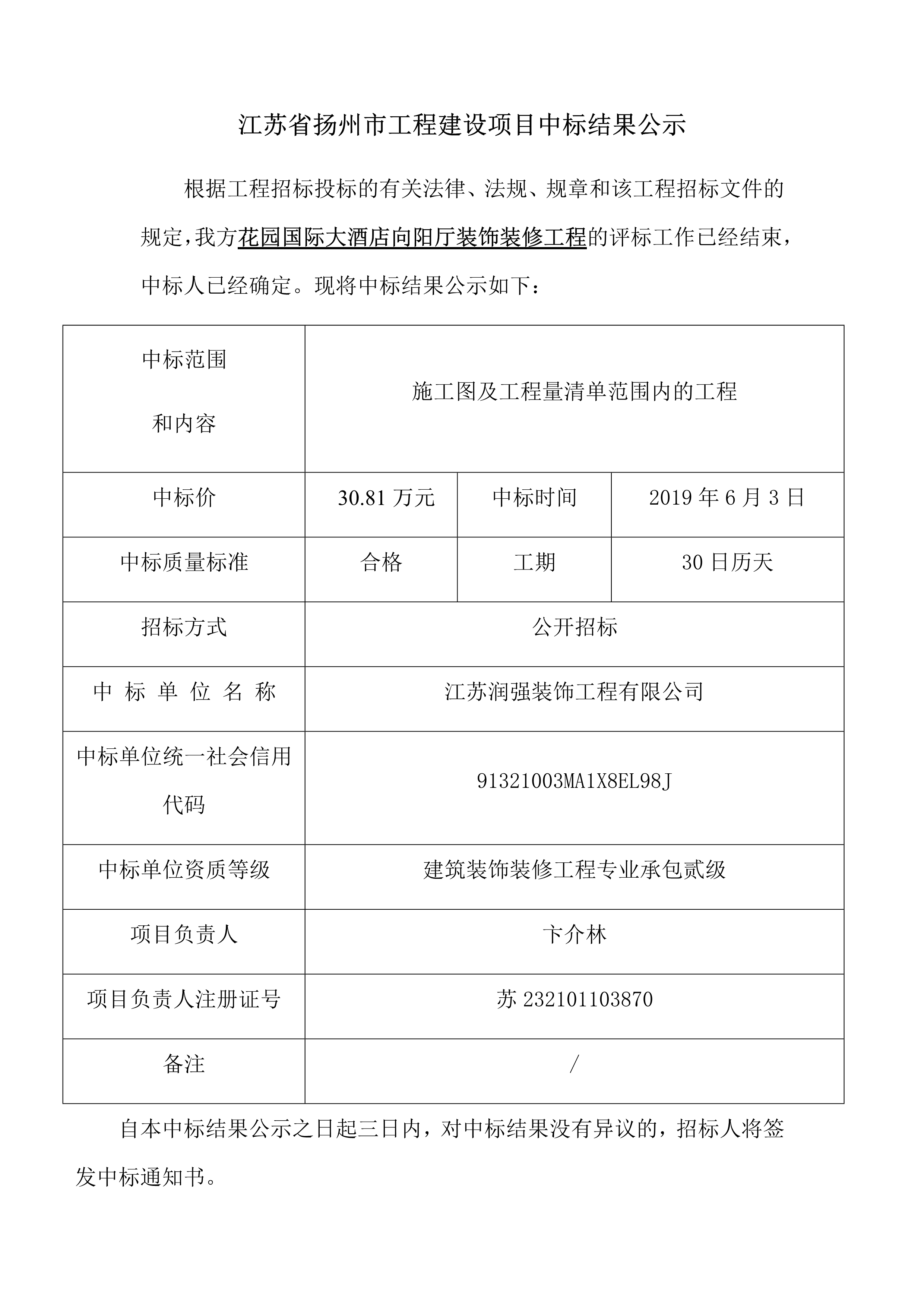 江蘇省揚州市工程建設(shè)項目中標(biāo)結(jié)果公示
