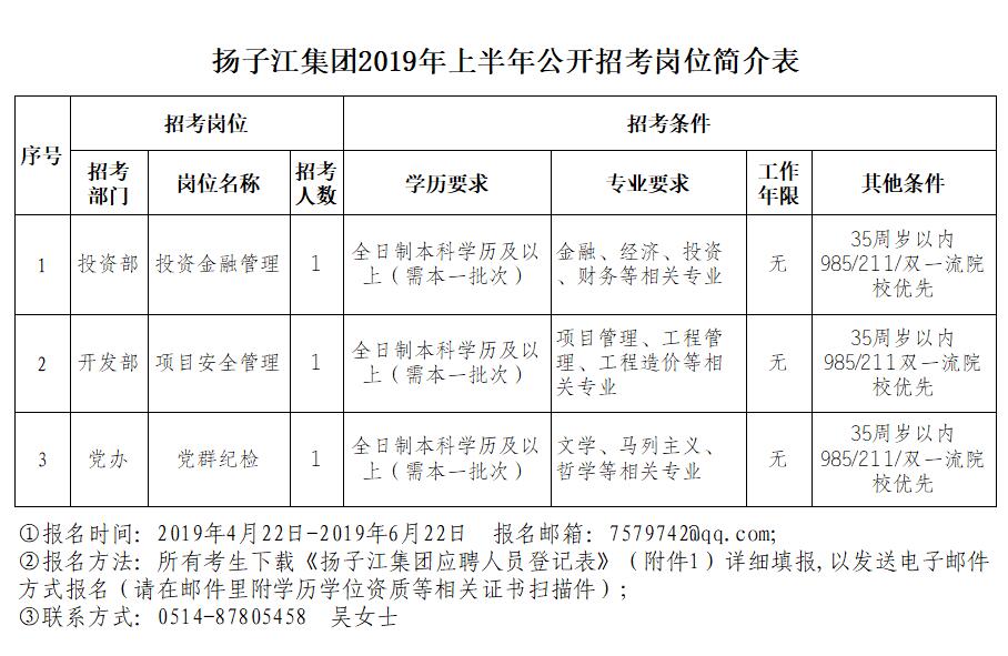 揚(yáng)子江集團(tuán)2019年上半年公開(kāi)招考管理崗位