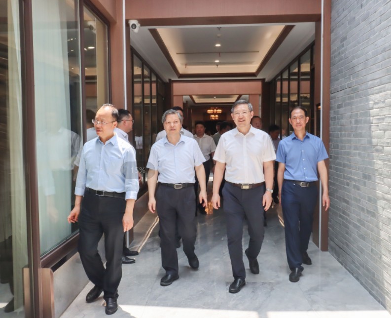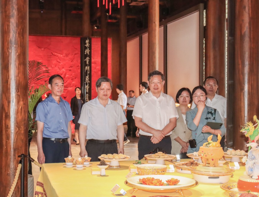 8月3日上午,省人大常委會副主任周廣智一行在揚州市人大常委會主任孔令俊、副主任韓方陪同下,蒞臨中國淮揚菜博物館參觀調(diào)研。揚子江集團黨委書記、董事長蔡余良陪同。