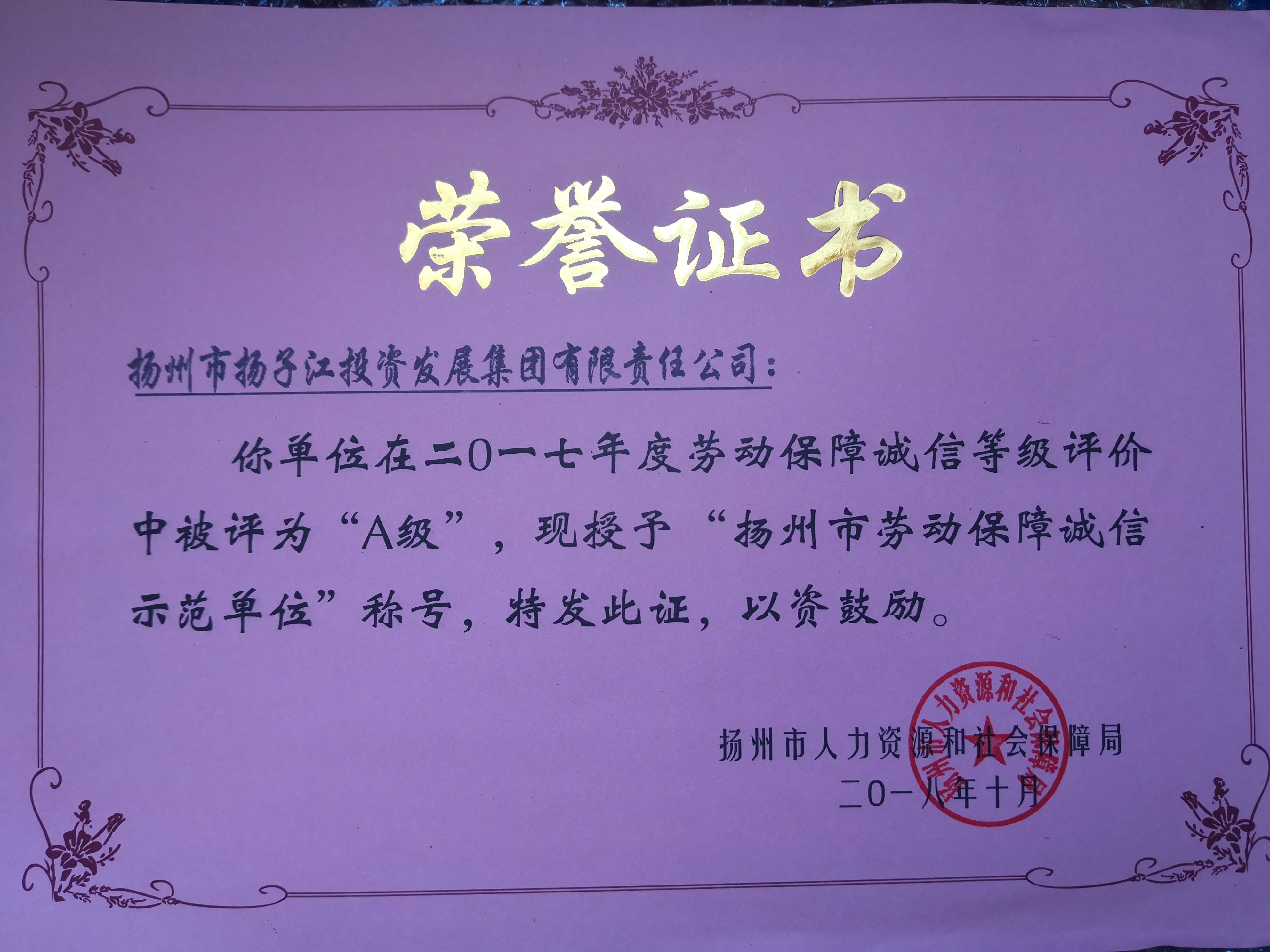集團及所屬4家企業(yè)被評為“2017年度揚州市勞動保障誠信示范單位”