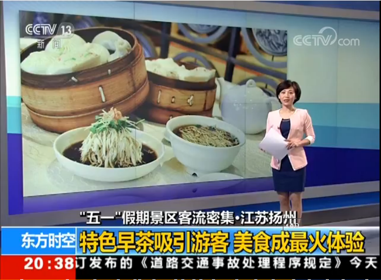 “五一”小長(zhǎng)假期間,中央電視臺(tái)和江蘇電視臺(tái)高頻次報(bào)道以冶春為代表的揚(yáng)州早茶文化,央視一套《晚間新聞》,央視新聞?lì)l道《東方時(shí)空》《共同關(guān)注》《午夜新聞》等名牌欄目紛紛聚焦揚(yáng)州百年冶春傳統(tǒng)餐飲,報(bào)道品嘗早茶成為揚(yáng)州市民和外地游客旅游休閑新的熱點(diǎn)。 冶春飲食文化五一期間在央視平臺(tái)驚艷亮相,充分展現(xiàn)冶春傳統(tǒng)美食文化的巨大魅力和旺盛的生命力,百年老店的品牌在全國(guó)范圍內(nèi)進(jìn)一步打響。 江蘇電視臺(tái)《荔枝新聞》也刊發(fā)相關(guān)新聞。(冶春餐飲)