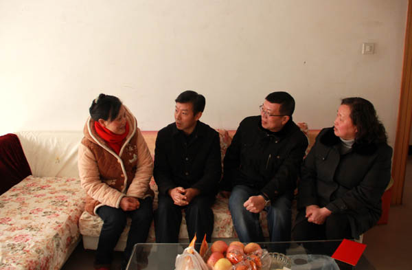 新春慰問(wèn)送溫暖,殷殷真情體關(guān)懷。2018年春節(jié)即將來(lái)臨,為幫助困難職工度過(guò)難關(guān),過(guò)上一個(gè)快樂(lè)祥和的新年,2月7日,集團(tuán)副總經(jīng)理王向榮在揚(yáng)州商城總經(jīng)理江希琪等的陪同下,上門慰問(wèn)大病術(shù)后休養(yǎng)的商城員工王明芳,為她送上集團(tuán)領(lǐng)導(dǎo)的關(guān)懷和新春的祝福。 在王明芳的家中,江希琪介紹了她的情況,王向榮與其親切交談, 通過(guò)拉家常、問(wèn)冷暖,詳細(xì)了解了王明芳的家庭生活現(xiàn)狀,并給她送去了慰問(wèn)金。王向榮囑咐王明芳要休養(yǎng)好身體,家庭生活方面如有困難,可以及時(shí)向組織反映,組織上會(huì)給予幫助,同時(shí)還鼓勵(lì)她要保持健康心態(tài)和樂(lè)觀精神,積極面對(duì)未來(lái)。王明芳對(duì)領(lǐng)導(dǎo)的關(guān)懷和鼓勵(lì)非常感動(dòng),表達(dá)了感激之情,表示今后會(huì)以積極的心態(tài)面對(duì)生活,克服困難,不辜負(fù)領(lǐng)導(dǎo)們的關(guān)懷和期望。 一直以來(lái),商城把幫扶困難職工作為一項(xiàng)重要的工作,每年都會(huì)開(kāi)展困難職工摸底工作,掌握具體情況,切實(shí)幫助他們排憂解難。集團(tuán)領(lǐng)導(dǎo)則以重大節(jié)日走訪活動(dòng)為契機(jī),親自帶隊(duì)走訪慰問(wèn)困難職工,真正把組織關(guān)懷送進(jìn)職工心中,讓他們感受到大家庭的溫暖。(揚(yáng)州商城) |