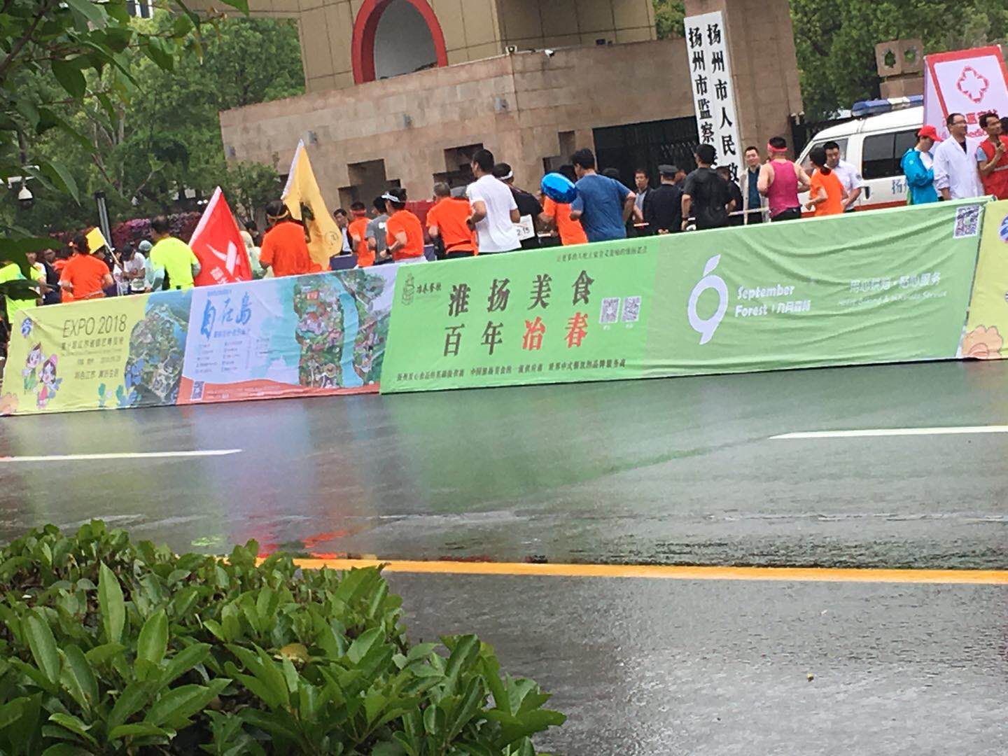 同時,揚州商城組織部分志愿者來到東關(guān)古渡迷你馬拉松終點站為揚馬加油。(集團辦公室 冶春食品 置業(yè)公司) |