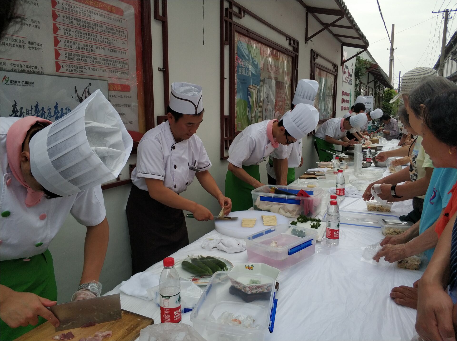 同時(shí),在市國(guó)資委機(jī)關(guān)黨支部的統(tǒng)一協(xié)調(diào)下,集團(tuán)攜西園飯店、花園國(guó)際大酒店、盧氏鹽商、萃園城市酒店、冶春餐飲、會(huì)議中心、明月湖酒店的黨員大廚們,來(lái)到常府社區(qū)為居民展示文思豆腐、菊花豆腐、蓑衣黃瓜、果蔬雕刻等刀工技藝,同時(shí)向社區(qū)居民義務(wù)提供了批干絲、揚(yáng)州炒飯、剁砧肉等服務(wù),居民對(duì)大廚們的技藝表示贊嘆并積極討教烹飪秘訣。集團(tuán)黨員隊(duì)伍朝氣蓬勃、奮發(fā)有為的精神狀態(tài)、扎實(shí)的廚藝基本功和文明有禮的素質(zhì)形象,得到居民的廣泛好評(píng)。(集團(tuán)黨辦、運(yùn)營(yíng)部、采購(gòu)辦,會(huì)議中心) |