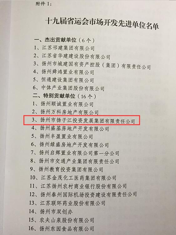喜報:集團(tuán)被評為江蘇省第十九屆運(yùn)動會市場開發(fā)“特別貢獻(xiàn)單位”